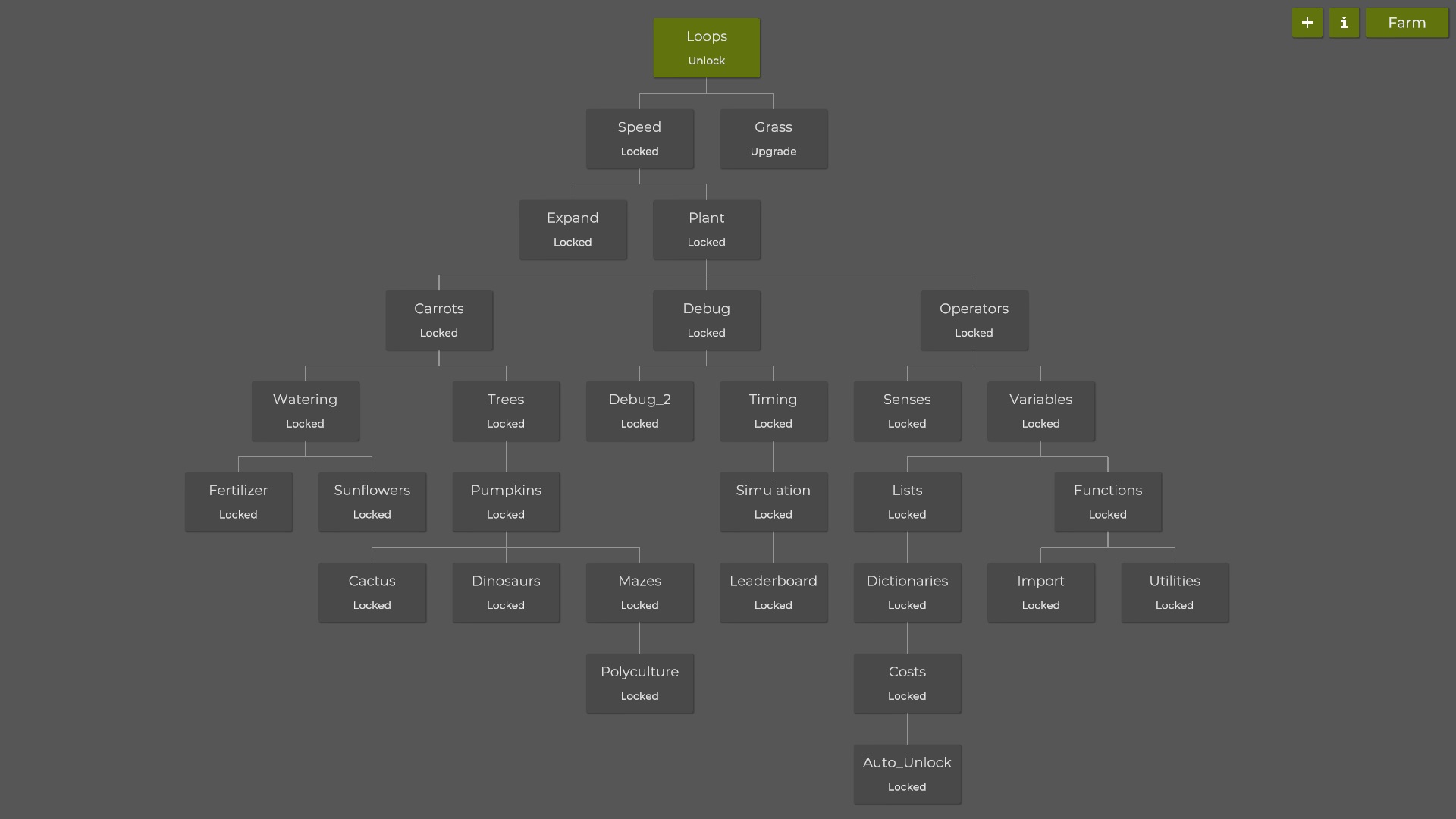 As you can see, over time based on the resources you grow and harvest you can choose from unlocks to both expand performance and available features/crops.
