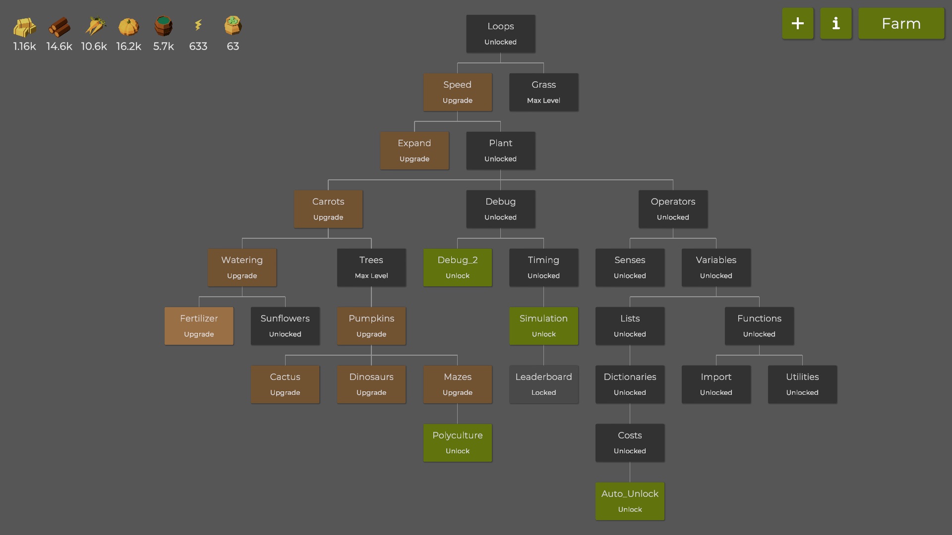 You will need lots of resources, just like most farming games. So here is a script to get you started, this one is great for farming the basic resources needed to start unlocking some of the intermediate steps on the unlock tree.